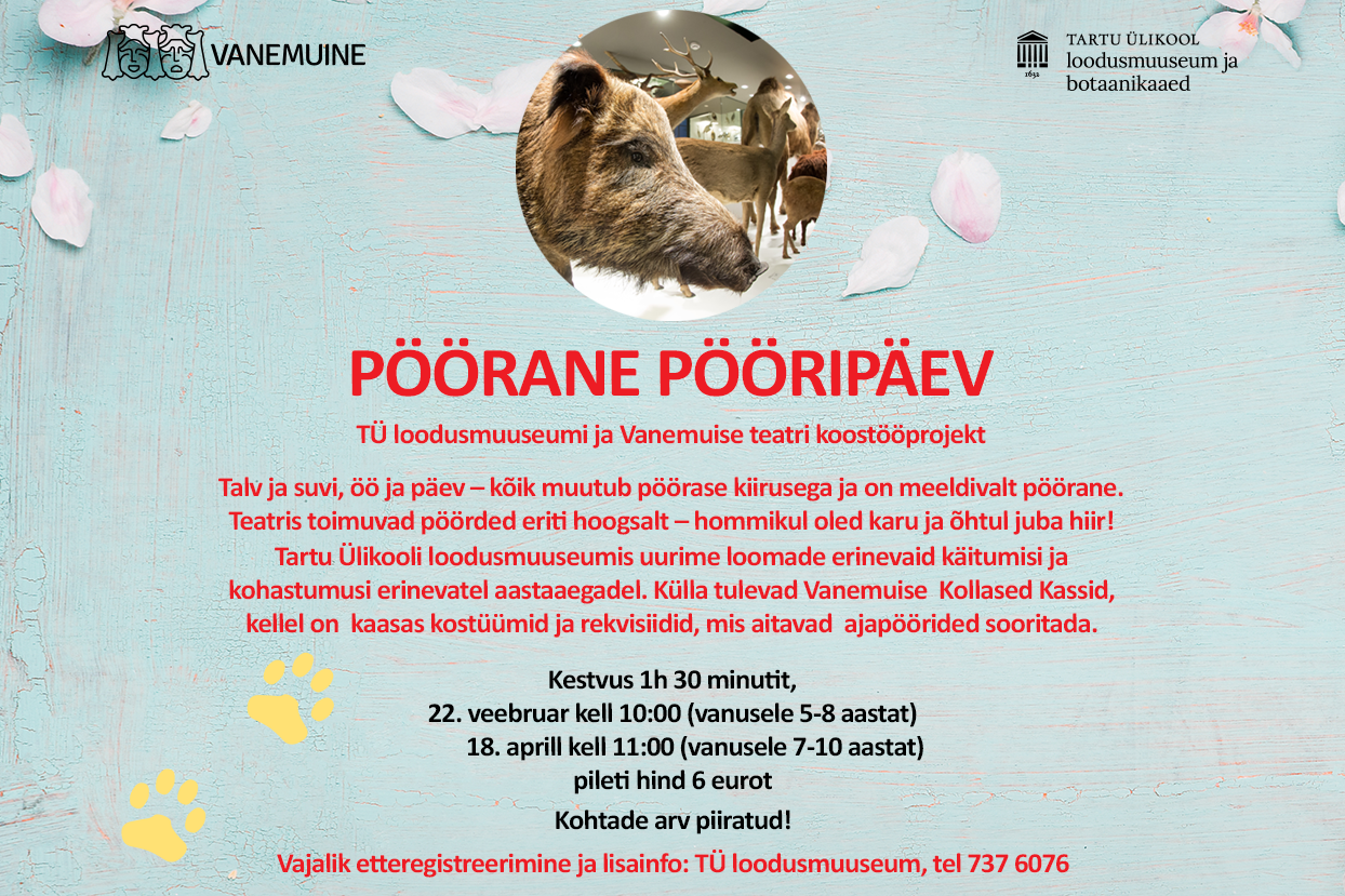 Koolivaheaja looduspäeval “Kus kalad elavad?” kutsume õpilasi Tartu Ülikooli loodusmuuseumisse uurima kalu Emajões ja meres ning tutvuma maailma loomariigiga. Looduspäeval on osalema on oodatud 7-14-aastased lapsed.